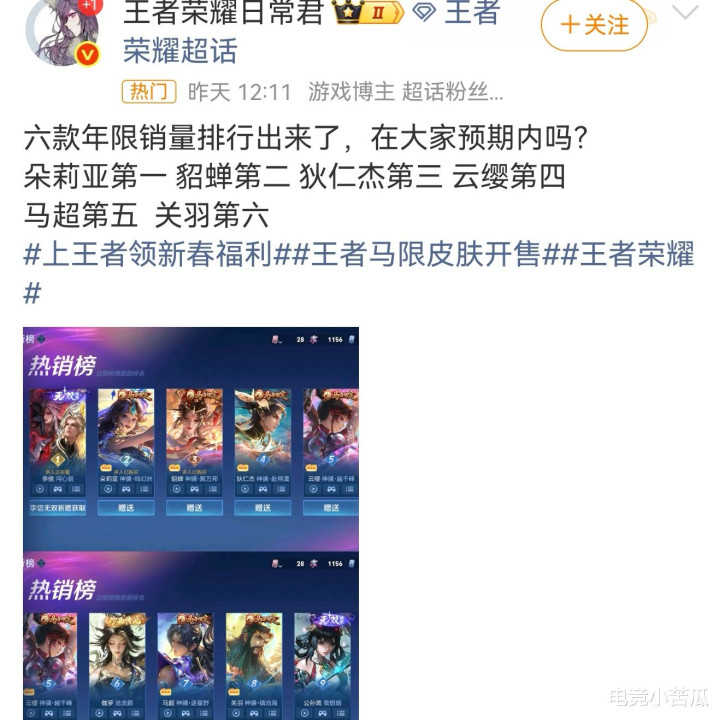 对于这次马限皮肤的销量排名,各位怎么看呢?猜到是这个结果了吗?也不知道是不是官方都看不懂了,要不加强一下关羽?