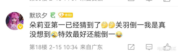 除了最后一名是关羽之外,榜首的也让人直呼不理解,第一的竟然是朵莉亚。